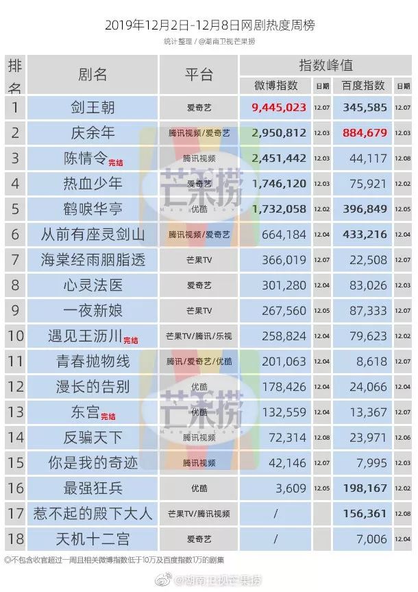 越至年底,内容领域的竞争越激烈。上周在电视渠道播出的剧集和综艺变化不大,市场表现依旧向好,但网络渠道又新添多部作品,不出意外的,这些作品中不少都将跨过年关,成为今年的跨年档内容。