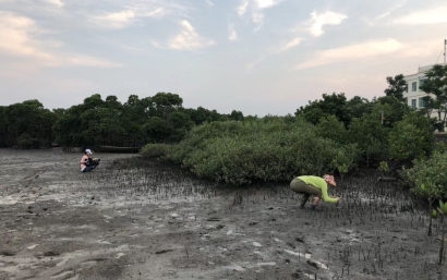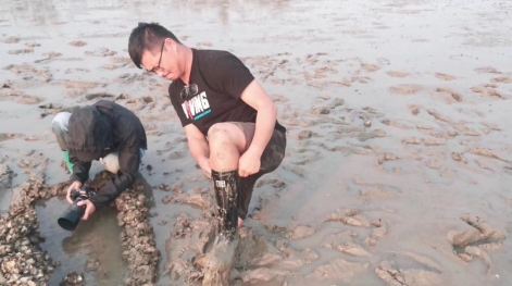 “裸足在浅滩潮间带,我们记录着红树林保护区健康的生态系统。淤泥浊水、污手垢面,蚊虫肆掠。。。也许这就是, “心之所向,素履以往”!