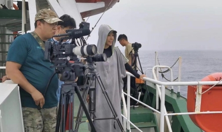 “风餐露宿,我们远赴黄海冷水团,记录中国人领跑全球的远海三文鱼养殖工程,世界最大的深海网箱【深蓝一号】。看着工人劳筋刻骨的作业,让我有了乘风破浪的冲劲!”