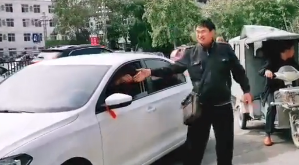 不过,也有人认出了“大衣哥”,对此“大衣哥”也很热心,和对方握手,远点的人打招呼,“大衣哥”还以敬礼致意。