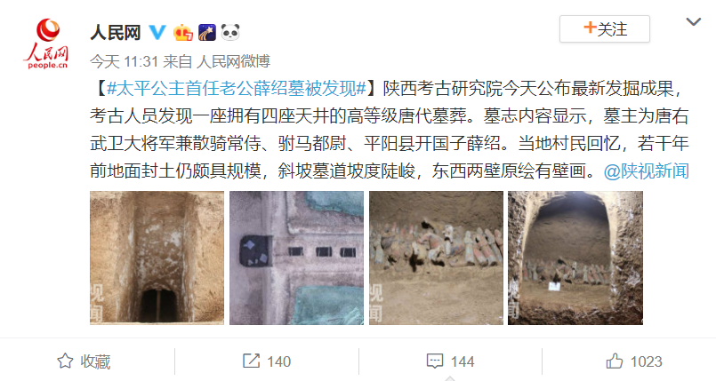 12月17日上午,有一档新闻引起了不少网友的关注,据新闻报道,陕西省考古研究院在西咸新区空港新城底张街道岩村发掘了一座带有四个天井和前后砖券墓室的大型唐代墓葬,而根据出土墓志证实,该墓墓主为唐太平公主第一任驸马爷:薛绍。