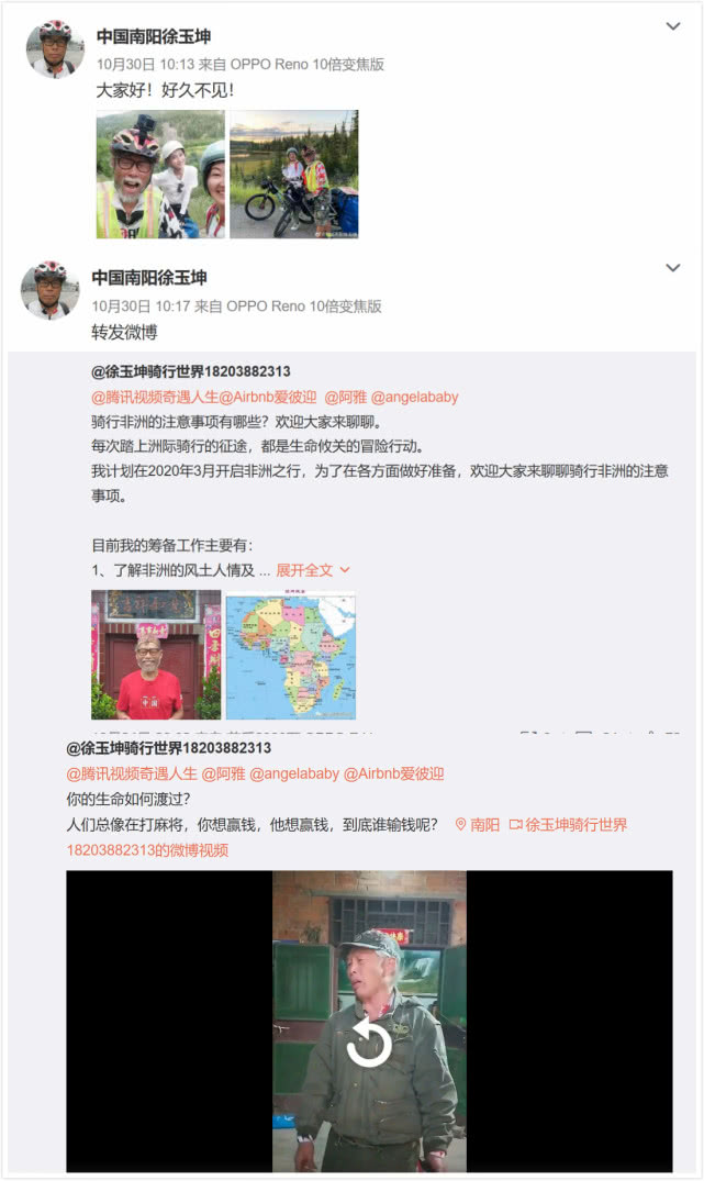徐老徐玉坤是一个非常富有传奇色彩的人物,他在2007年开始独自骑行,一个人一个睡袋一顶帐篷骑行了11万公里,势要走遍全世界,还曾被颁发“最佳环球旅行奖”。
