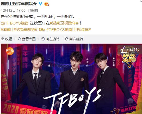 所以每年一到了十二月,几位卫视领头羊最大的事就是准备跨年晚会,开始各种官宣炒作造势预热。这些年一直是地方卫视老大哥的湖南卫视,每年跨年晚会都是众星云集全力以赴拼第一。今年湖南卫视也不例外,十二月就开始陆陆续续官宣跨年晚会嘉宾来吸引粉丝和观众期待,目前已经有TFBOYS、杨幂、张碧晨、王一博等等明星被官宣了,稳稳地圈获一大波明星粉丝为收视垫底基础。