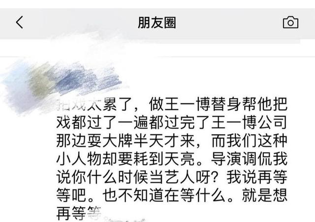 原标题:王一博替身发朋友圈抱怨:拍戏太累,做替补没人权,回应