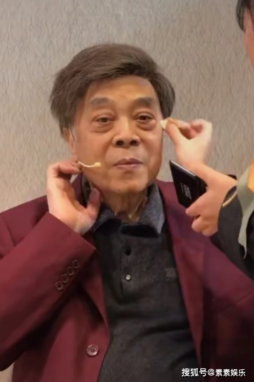 工作人员在为他补妆,当时的工作人员表示赵老师每一次都是自己带着化妆品过来,所以看到了他自己也是非常的开心,能为他上妆也是很重要的一个工作。