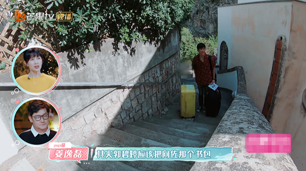 正所谓好事多磨,即使两人心中已经有点小摩擦,但现实依然要给两人挑战,在到达目的地后,又是一段冗长繁琐的阶梯路,因为向佐是个大男人,自然不会主动要求妻子郭碧婷帮忙,由此,向佐只能独自提着两个大行李箱辛苦的行走。