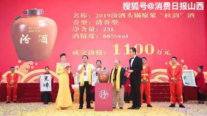 第一坛5L装2019汾酒头锅原浆“梅”酒,在现场由老酒收藏家孙和平以308万元买走。第二坛5L装2019汾酒头锅原浆“竹”酒,被1919公司董事长杨陵江以519万元买走。最重磅的是,25L装2019汾酒头锅原浆“秋韵”酒,被汾酒经销商刘宝以1100万元买走,创造汾酒封藏大典历届售卖价格的最高纪录。