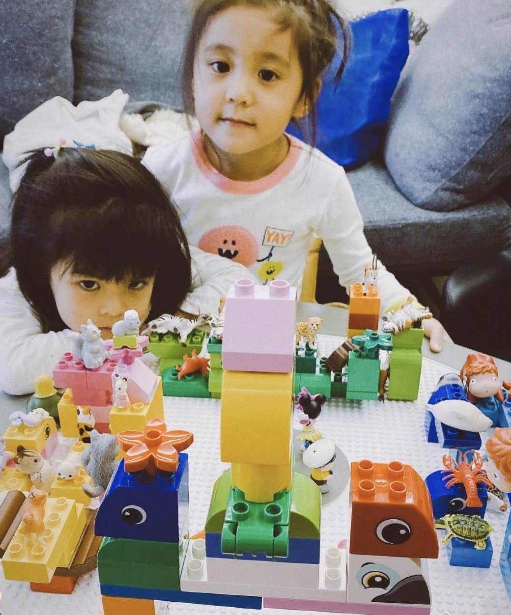 除了爱搞怪的波妞,她们家还有爱萌萌哒的咘咘,论五官各有各的特色,咘咘的五官非常的漂亮,像是被天使吻过的脸庞。平时里贾静雯会带两个小朋友做亲子或是室外活动。
