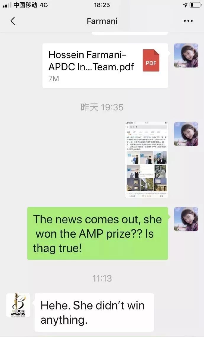 很快,又有人晒出了和该奖项创始人Farmani的聊天记录。