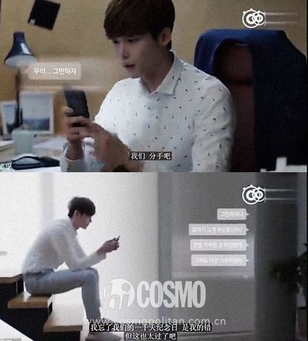 李钟硕和朴信惠拍过一个微电影,有一段时间了,他们在其中饰演一对异地恋的情侣,一个在韩国,一个在上海工作。两人提一次分手有多简单呢?女生打电话过去,男生在开会的空档去洗手间,女同事接了电话,心机叵测地说“他在洗澡”。然后女生立马搭飞机回韩国,又撞见这两人在公司门口交谈。