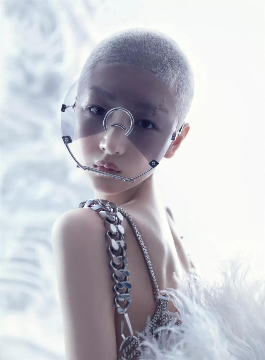 果不其然,周冬雨以未来感十足的银灰寸头、“机械姬”既视感的帅气造型登上《Mini芭莎》一月刊的封面。