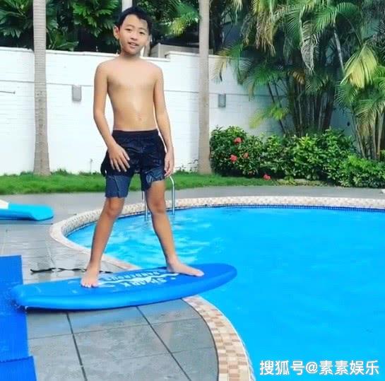 原标题:张柏芝教小儿子滑水,比起大儿子谢振轩,小儿子更像谢霆锋