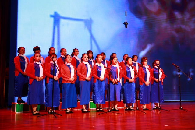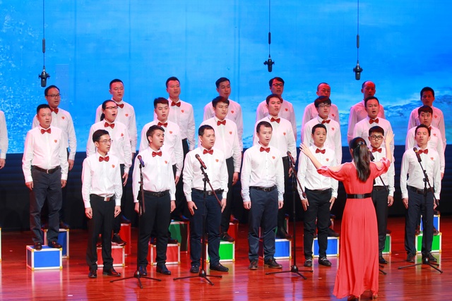 接下来,一首首脍炙人口的经典红歌响彻礼堂,一场场豪迈雄壮的精彩演唱赢得全场的热烈掌声。精彩节目不断,高潮迭起,掌声此起彼伏。