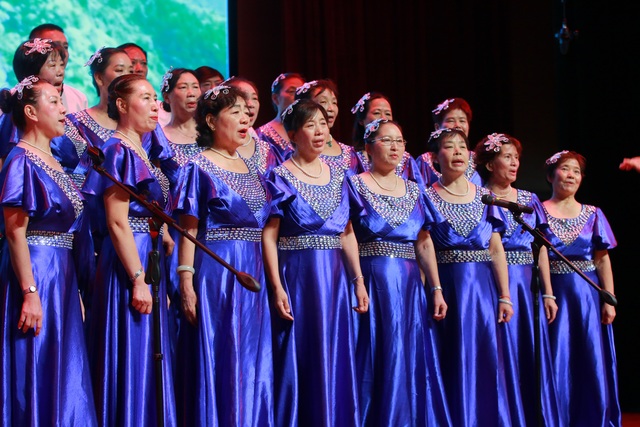 金城校区的爷爷奶奶合唱了一首《没有共产党就没有新中国》,虽然他们的平均年龄在65岁,但歌声依旧铿锵有力。七十多岁的领唱爷爷奶奶,一开嗓全场一片呼声与掌声。他们是中华人民共和国奋发图强的亲历者,无法抗拒的歌声里表达了一颗颗赤诚的爱国心。
