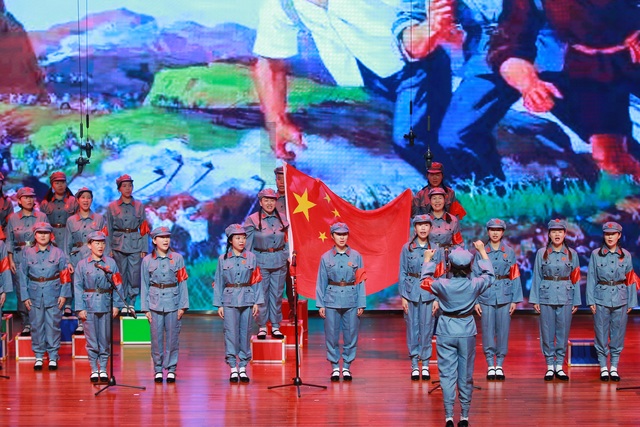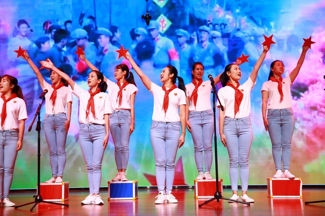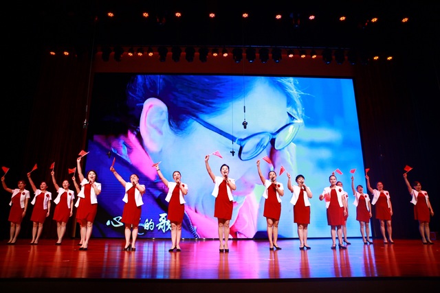 “红星闪闪放光彩,红星灿灿暖胸怀,红星是咱工农的心,党的光辉照万代……”一首耳熟能详的《红星闪闪》闪耀在鸿业苑校区全体女教师的歌声里,让现场观众不禁想起,这首歌也陪伴了几代人的成长。