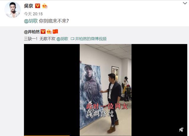 虽然票房扑街,但是吴京好像没有受到任何影响。10月4日晚上,吴京转发井柏然的微博,点名胡歌,说:你到底来不来?
