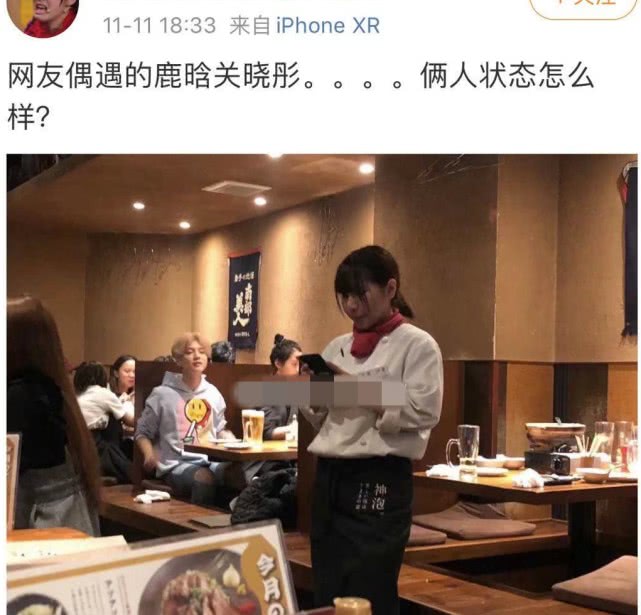 11月11日,有网友发布了一张日本偶遇鹿晗与关晓彤的图片!