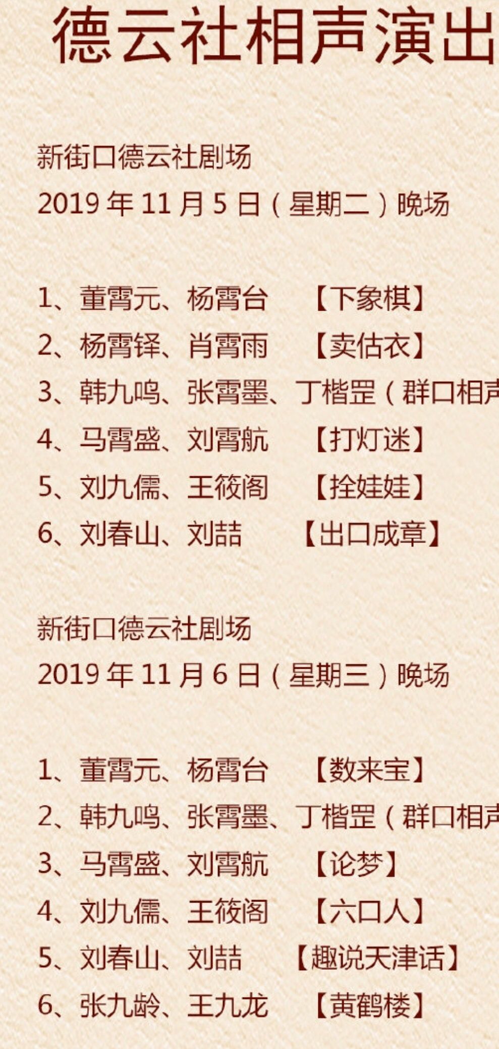 11月1日晚上,德云社发布了其各队近期的演出安排。