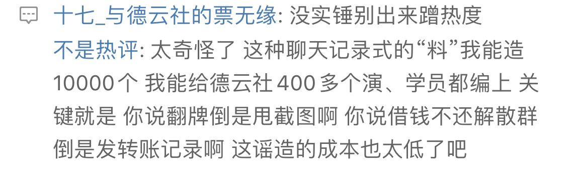 还有网友爆料称,德云社曾去向有关的爆料人员调查取证,但爆料人却否认自己说过,还说要去向当事人核查。
