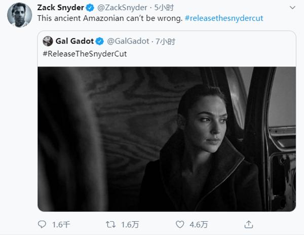 然而就在今日,神奇女侠扮演者盖尔·加朵与蝙蝠侠扮演者本·阿弗莱克各自发布推文表示,希望华纳放出施奈德剪辑版。随后,扎克·施奈德本人转发了加朵发布的消息,并配文“亚马逊战士说得没错”,表达了对这一观点的认同。