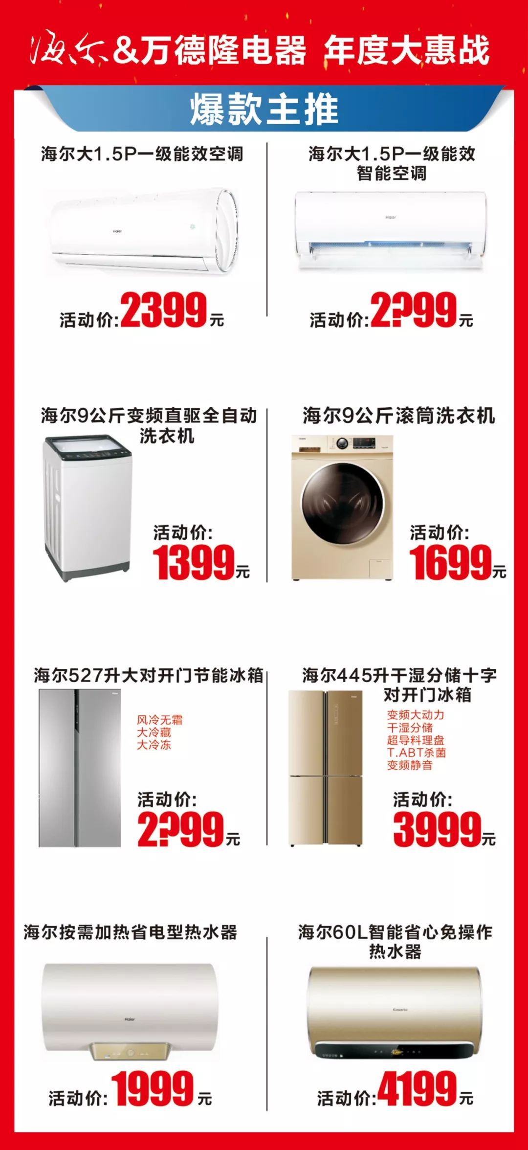 原标题:【年度重磅钜惠】海尔来了,万德隆&海尔年度大惠战!错过了,后悔都来不