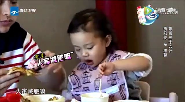 《爸爸回来了》里有一处,贾乃亮哄甜馨吃饭,她怎么都不肯。