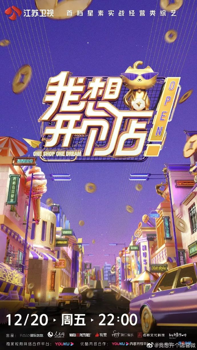 《我想开个店》将于12月20日起每周五晚22点在江苏卫视、优酷播出。郭京飞、吴昕、吴宣仪、黄明昊、李响五位明星嘉宾将通过层层遴选,最终与5位搭档共同完成开店梦想。