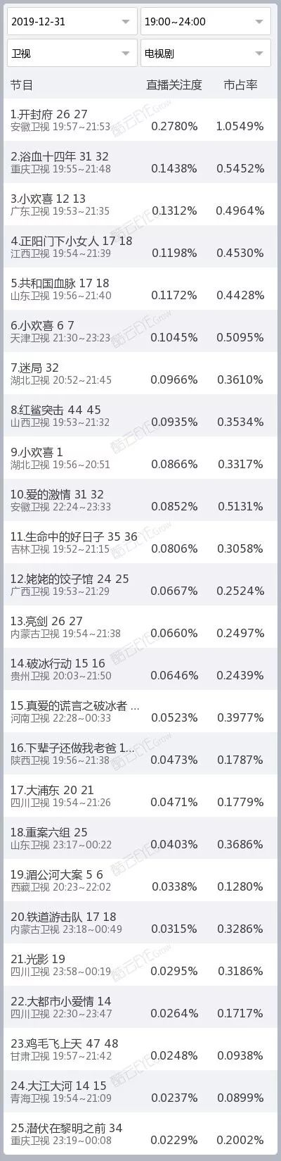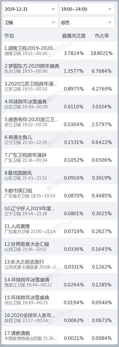 【每日关注度】央视+五大卫视,跨年夜晚会百花齐放