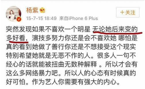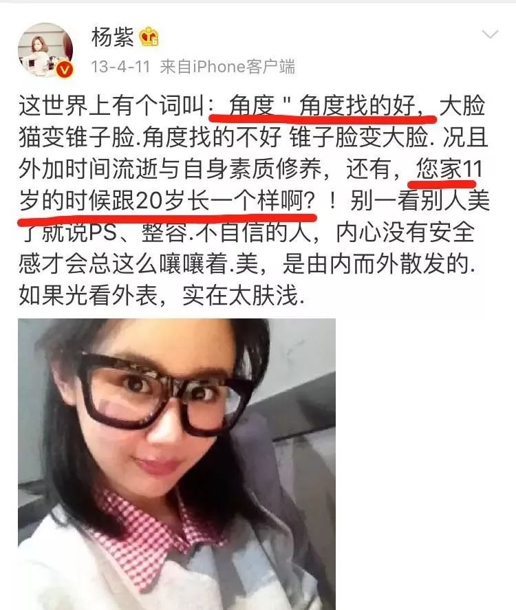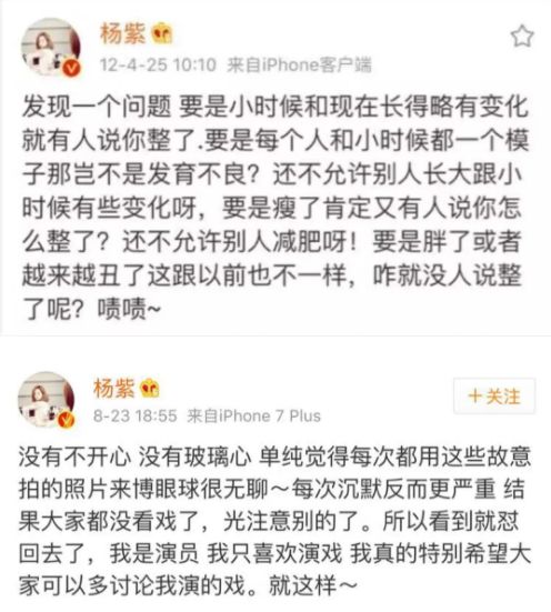 但其实说真的,杨紫真的还蛮在乎自己的外表的,关于颜值的小论文,她曾在微博多次提及。