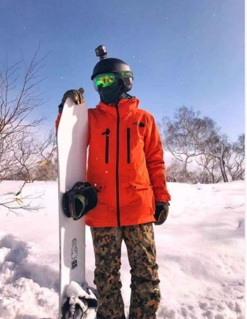 霆锋当天穿的滑雪服也和网友曝出的照片里一样,上衣是一件红色的滑雪服,下装穿了一条迷彩裤,且拍照的姿势还是那么的帅气!