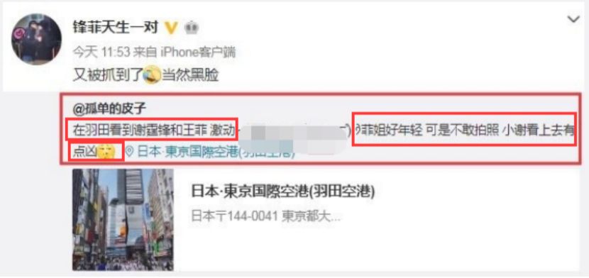 该名网友的坐标地是日本的羽田,且说看到王菲本人的感觉是她非常年轻,但谢霆锋看上去就有点凶。