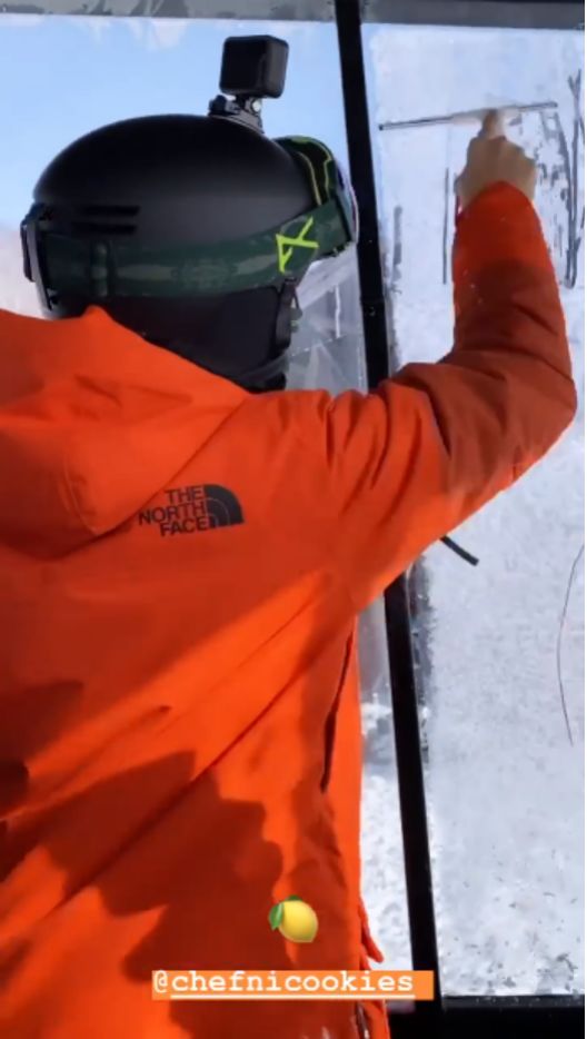 徐濠萦还录下了谢霆锋为铲雪车刮掉玻璃上的冰碴,两人有说有笑心情非常不错。