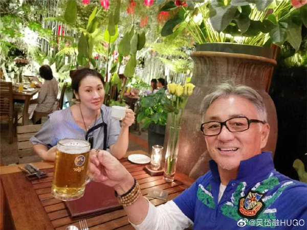 吴岱融晒出数张与妻子同框合影,60岁的吴岱融虽然看上去精神不错,但白发苍苍的模样显然与当年的白面小生差距甚远,不过,小5岁妻子钟淑慧倒显得十分年轻,脸上不见一丝皱纹,一头乌黑的秀发简单绑了起来,确实靓丽的很,而两人虽然是夫妻,但这番同框看上去倒更像是父女一般。