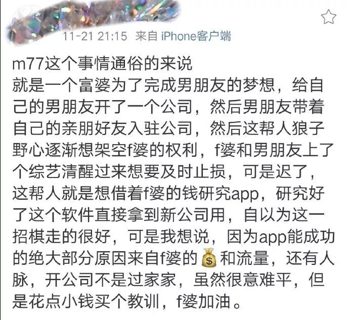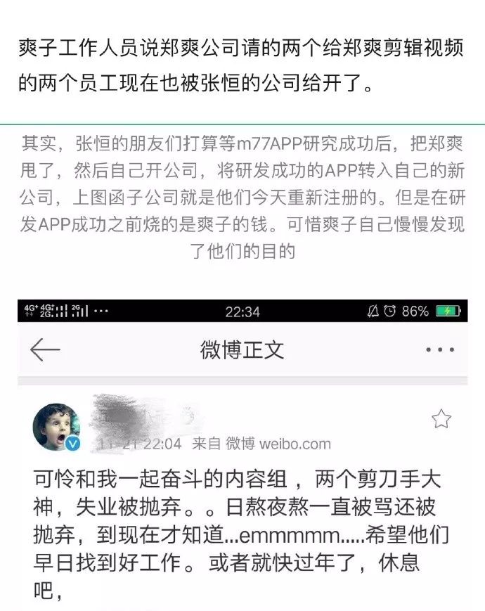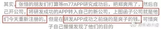 网上有爆料说,张恒的朋友们就是想借和郑爽之前合开的公司,把M77这个软件研究成功,之后再把郑爽踢出局。