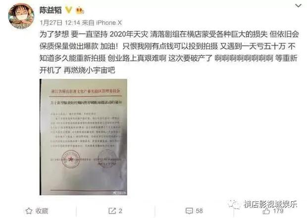 据横店影视城官方公号:宣布停拍后,剧组面临了巨大的经济压力,每天动辄数百、数千人的食宿费用、已经置好的场景、摄影棚,租赁的道具设备,等等,每天一睁眼就是庞大的开支,不知何时才能复工,让剧组制片焦虑不已。