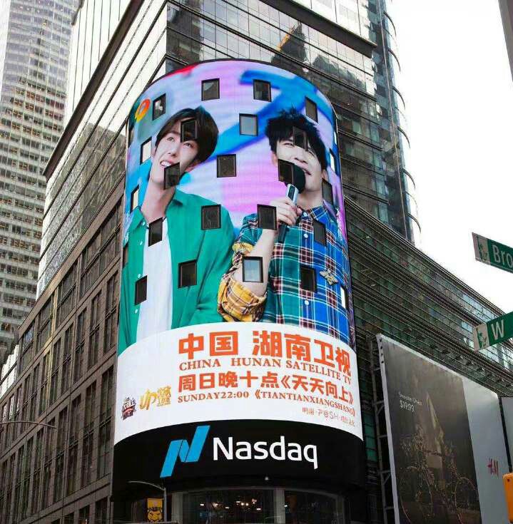 12月11日下午,湖南卫视《天天向上》里的天天兄弟们登上了纽约时代广场大屏幕,让粉丝们十分惊喜的是这其中就有王一博。屏幕里的王一博身穿绿色外套搭配白色T恤,看上去帅气依旧。