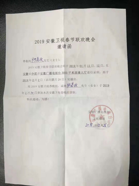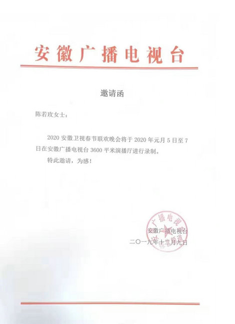 原标题:青年歌手陈若玫连续两届受邀出席安徽卫视新年联欢