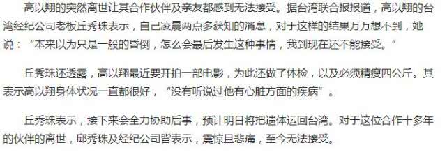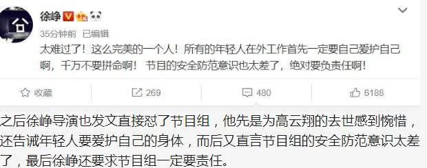 至于死因,官方给出的结论是心源性猝死,只不过不论是不是因为高以翔本人有什么情况,追我吧节目都难辞其咎。