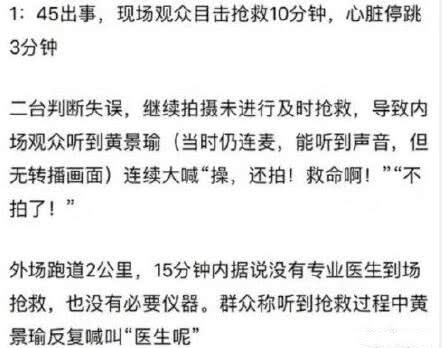而节目组不妥的做法还不仅仅是这样,还是黄景瑜他们发现了事情不对才开始喊医生,喊了那么久啊!黄景瑜他们会留下阴影吧,那种绝望看着人命一点点流失的感觉不好受