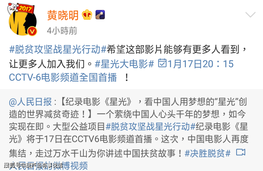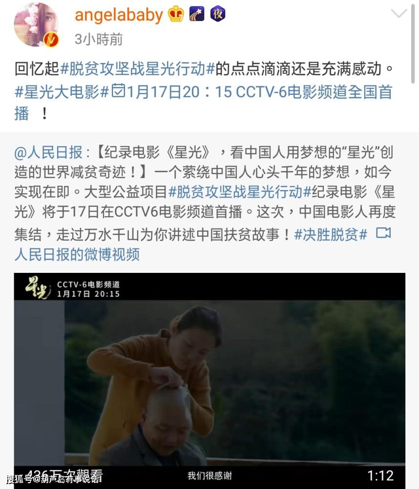1月10日,黄晓明和Anglebaby罕见为同一件事情发声,在展示两人夫妻之间的好默契同时还疑似借此为两人离婚的消息辟谣。只见两人同时转发了关于记录电影《星光》的微博,呼吁大家可以更加关注“扶贫”。