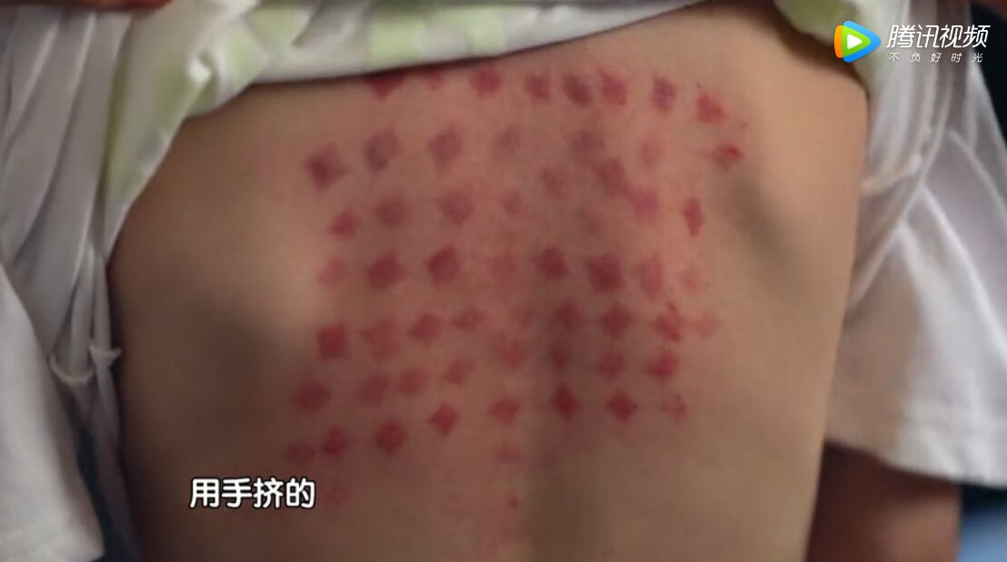 徐峥来休息室看他,他立马蹦起来三尺高说,“我好了!”爸爸为了让他尽快恢复,徒手给他刮痧,没有工具,就是用手指一个一个挤,冬冬的背上全是一个一个殷红的方块儿。徐峥看了都心疼得说不出话。
