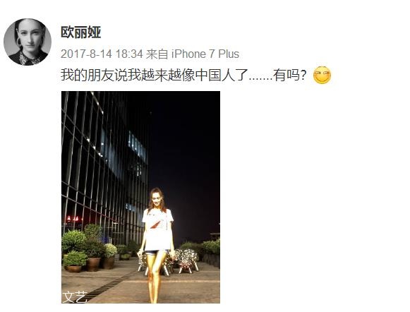 欧丽娅这个妹子发自内心地喜欢中国,曾经发文说:“朋友都说我越来越像中国人了。”还附上一个笑容表情包。