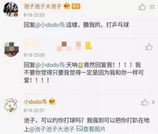从那以后,豆得儿虽然没有在微博中再提到过池子,但是,两人私下里的交集远比表面上多得多。其中,就有网友扒出了豆得儿约池子打羽毛球的微博留言。有消息称,原本豆得儿是约池子表姐打球的,但是逐渐发展成豆得儿约池子打球了。想必两人的关系正是因此才更进一步!