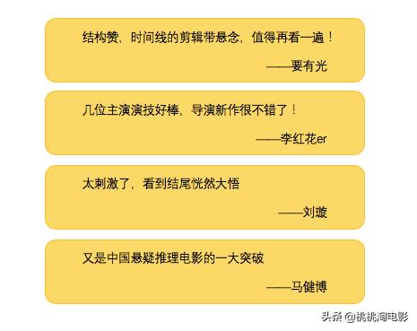 不少观众也对影片赞不绝口:电影特别精彩,不到最后一刻猜不出来究竟谁是凶手。导演的伏笔,演员们的优秀表现,都让电影的悬疑感升级,最后层层反转的结局更是让人意外。