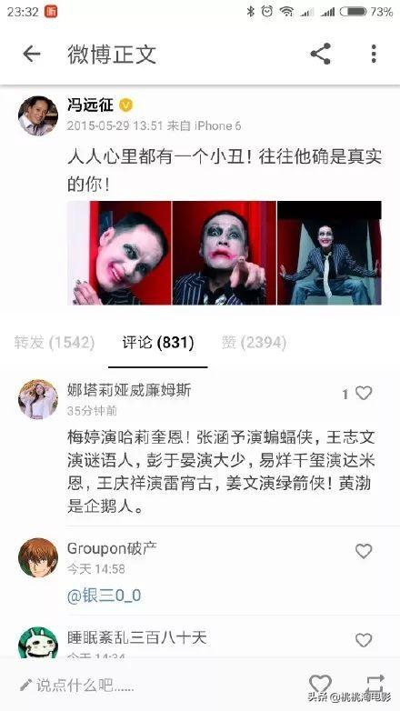 我们都知道,近来杰昆·菲尼克斯主演的《小丑》很火。万万没有想到,有网友翻出了冯远征2015年的一条微博。
