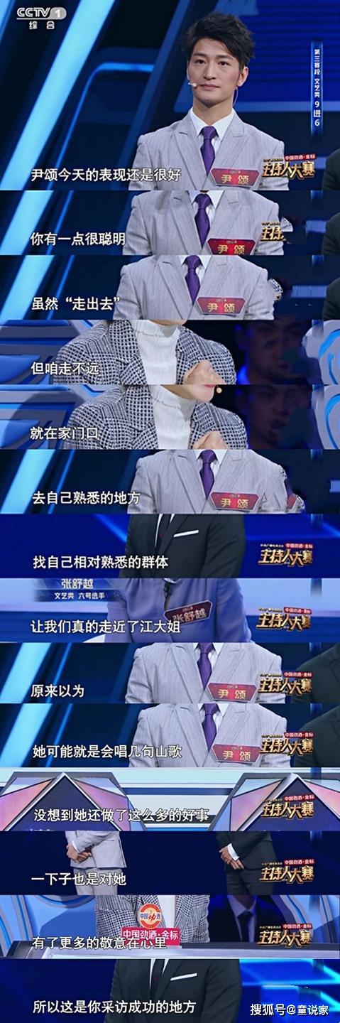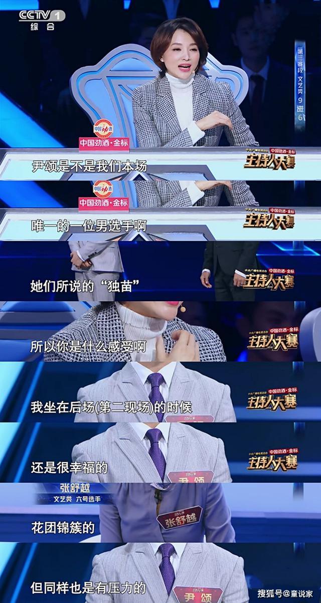 主持人大赛文艺类9进6比赛,9名选手争夺6个总决赛名额,选手们的表现可谓是异常精彩,给我们带来了一场超豪华的视觉盛宴,并且也突破了原先的风格,更加立体的给我们展现了一场颜值与实力并存在晋级争夺之战。比较有趣的是,在这9位文艺类选手中,只有一位男选手,更是被女选手们戏称为“独苗”——尹颂。