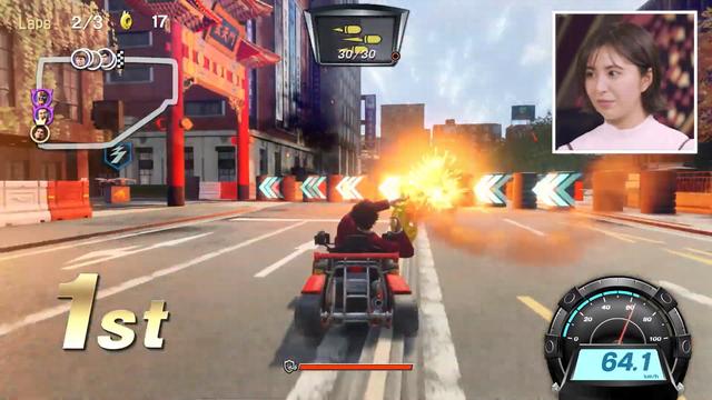 除了再次展示之前就有公开过的横滨景象,在电影院与睡魔的对抗,此次还展示了完整的赛车挑战过程,赛车时还能使用枪械,看上去非常欢乐。