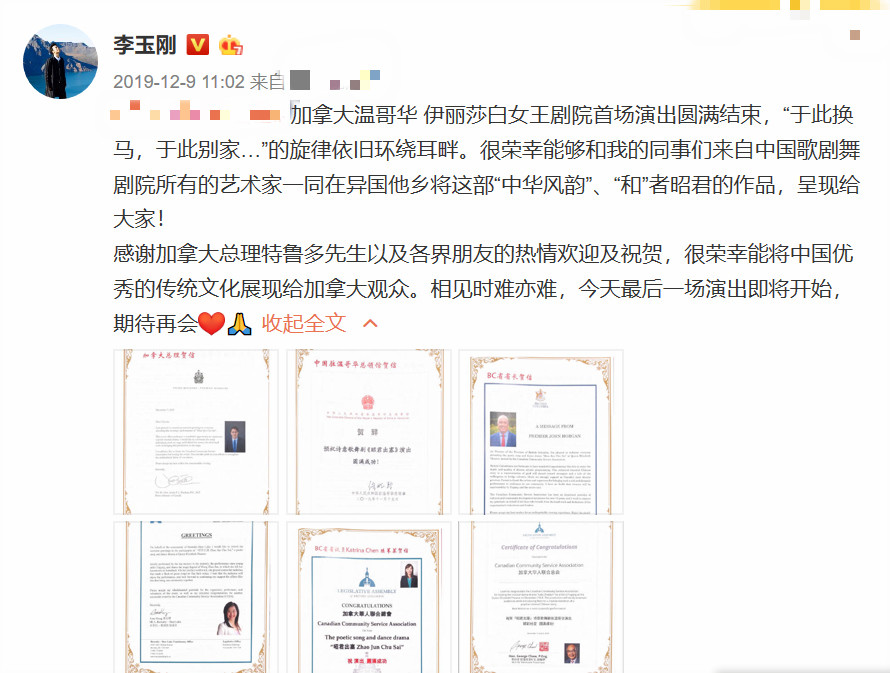 李玉刚还担任自己家乡长白山的文化大使,为了宣传自己家乡,还自己做导演主演,编排了一首歌曲的MV。零下23度的极端条件下在雪地里拍摄长达8小时。要小扒说,真的是非常用心而又努力了。