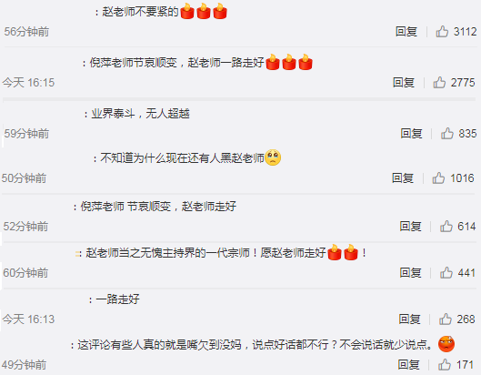 可见,大家对赵忠祥的评价也是大不一样。还有不少网友认为还是死者为大,不应该过分的说一些不该说的话。毕竟,赵忠祥的成绩也是有目共睹。