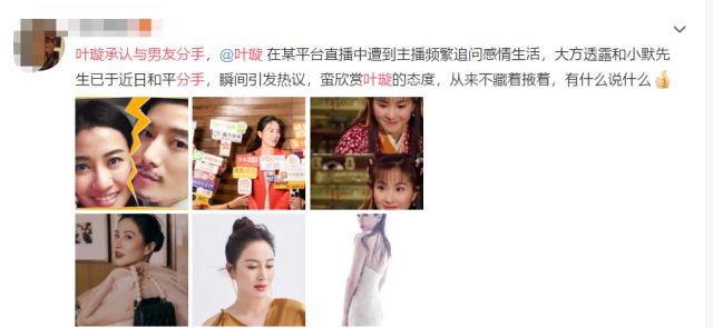 而过了不到半个月,叶璇在直播中被主播追问和小默先生恋情时,又透露和对方已经和平分手。如此反复的恋情,实在让人困惑不已。